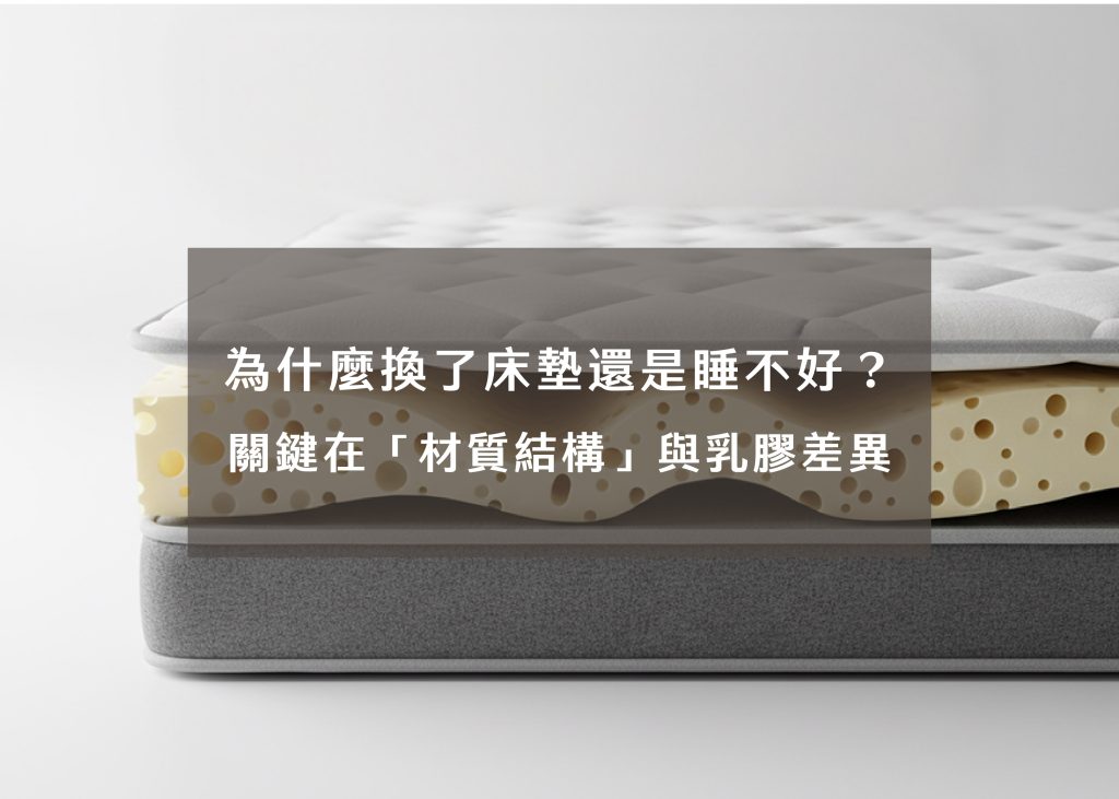 很多人換了新床墊,卻發現睡眠品質沒有明顯改善。其實影響睡眠的不只在品牌或價格,更重要的是床墊的材質結構與支撐設計。不同材質在透氣性、防蟎特性、回彈速度與支撐力上都有差異,如果不符合身體需求,即使換了新床墊,也可能感覺睡不好。