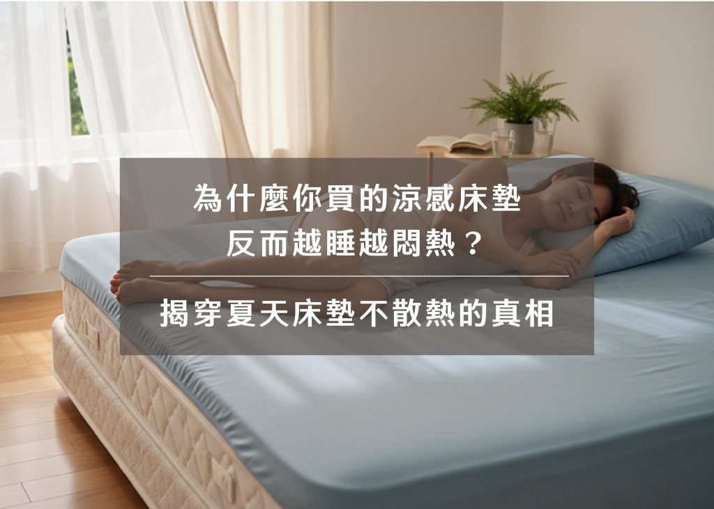 台灣夏天氣溫高、濕度重,很多人晚上睡覺時常覺得床面悶熱難眠。也因此,每到夏天,不少人會開始搜尋「涼感床墊」,希望換一張更適合夏天的床墊。但不少人實際使用後卻發現:剛躺下時有一點冰涼感,睡了一段時間後床面仍然變得悶熱,甚至半夜被熱醒。
